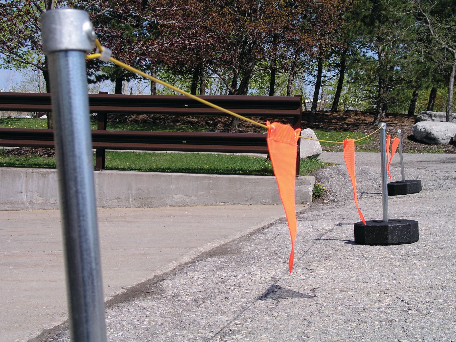 Las banderas de seguridad naranja y amarilla hacen que la línea de advertencia Kee Mark sea muy visible.