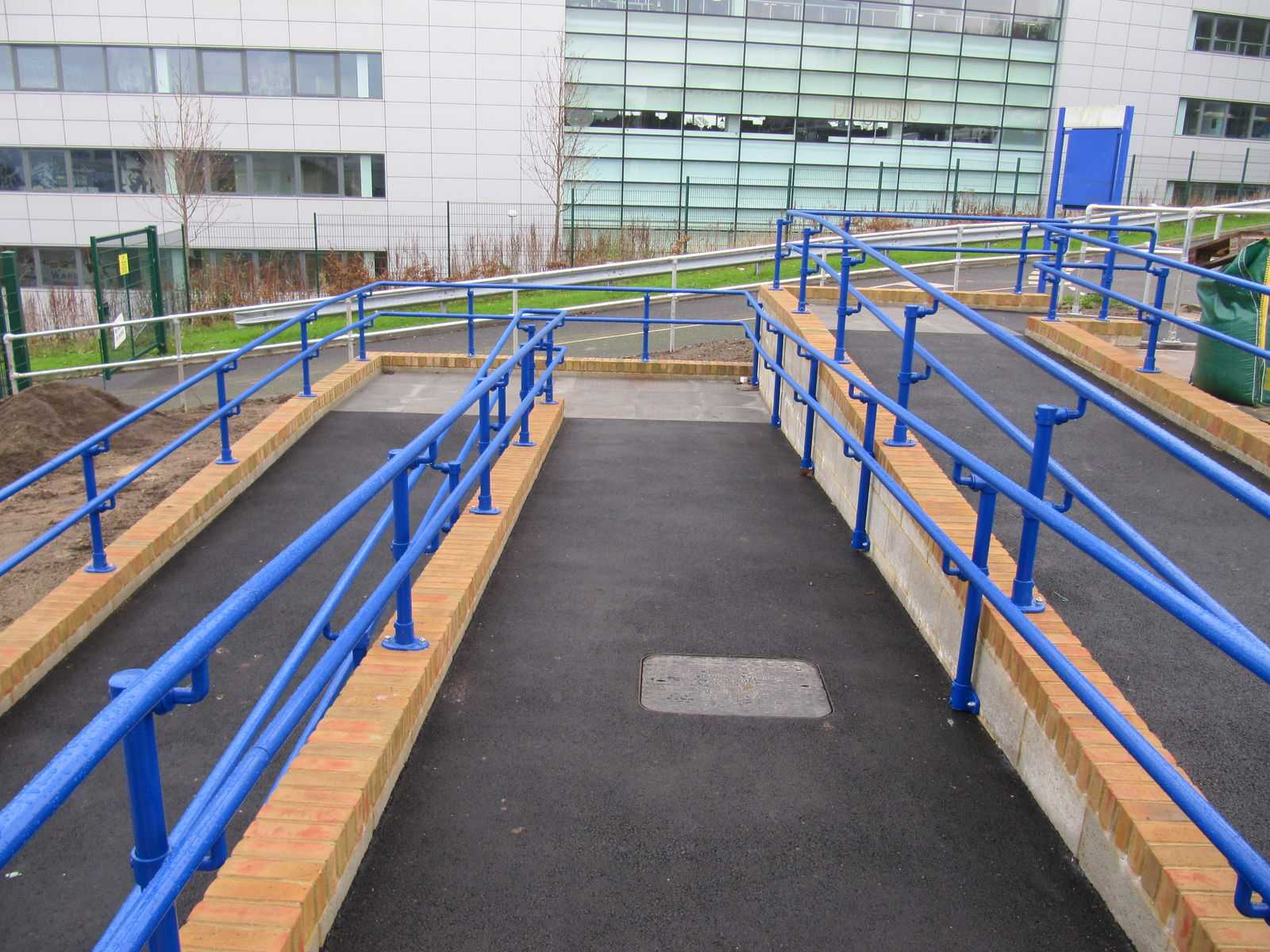 Nuestros accesorios únicos permiten que nuestras barandillas ADA se diseñen a medida para adaptarse a todos los rangos de diseños de rampas, desde estándar hasta muy complicado.